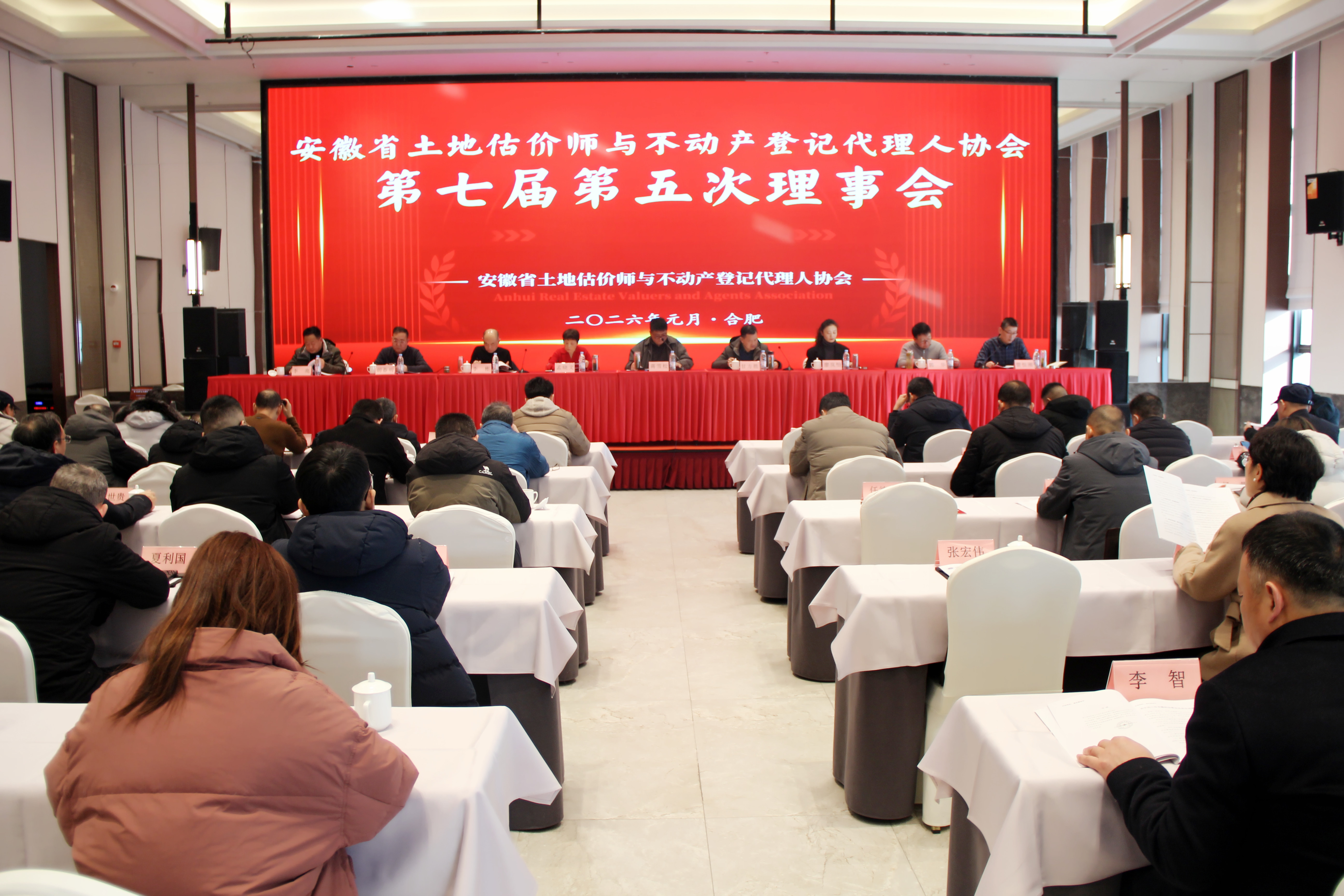 2026年1月23日,安徽省土地估价师与不动产登记代理人协会第七届第五次理事会在合肥召开。会议由蒋雪松会长主持。协会会长、副会长、党支部书记秘书长和理事共59人参加会议,监事会列席会议并负责会议监督,秘书处人员列席会议并负责会议记录。 会议通报了2025年党建工作报告和监事会工作报告;会议审议了2025年理事会工作报告和财务工作报告;会议审议了协会换届工作计划和协会党支部参与决策事项清单;会议还审议了会员管理相关事项。会议还宣读了协会继续教育培训、土地估价报告备案和行业自律管理三项工作的专题报告。 会议指出,2025年协会扎实推进各项工作,成绩斐然,2026年工作要点聚焦“服务会员、赋能发展”主题,紧扣行业发展脉搏。会议要求,协会要立足解决行业热点难点,以化挑战为机遇的意识,以规范执业为前提,以提高专业能力为抓手,以提升自身综合实力为目标,深化业务能力,拓展业务范围,以品牌服务促进行业高质量发展,为现代化美好安徽建设作出新的更大贡献。