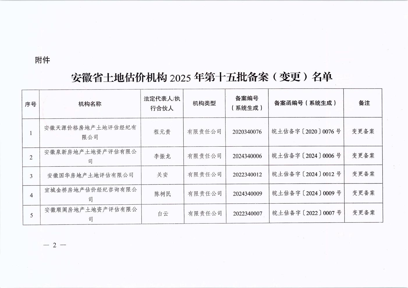 安徽省自然资源厅关于土地估价机构备案(2025年第十五批)的通知