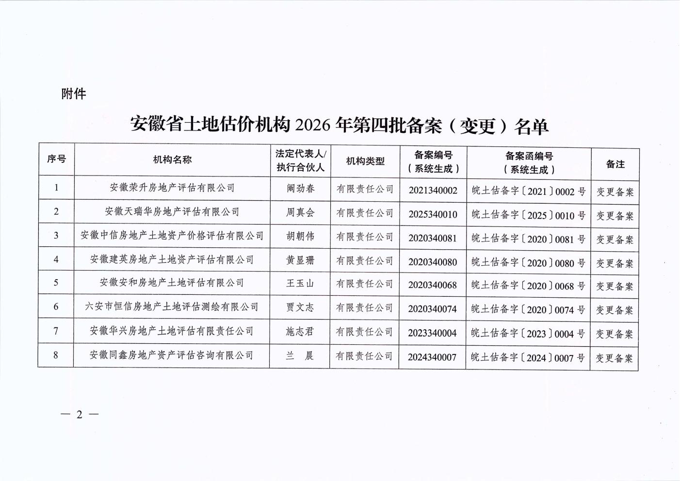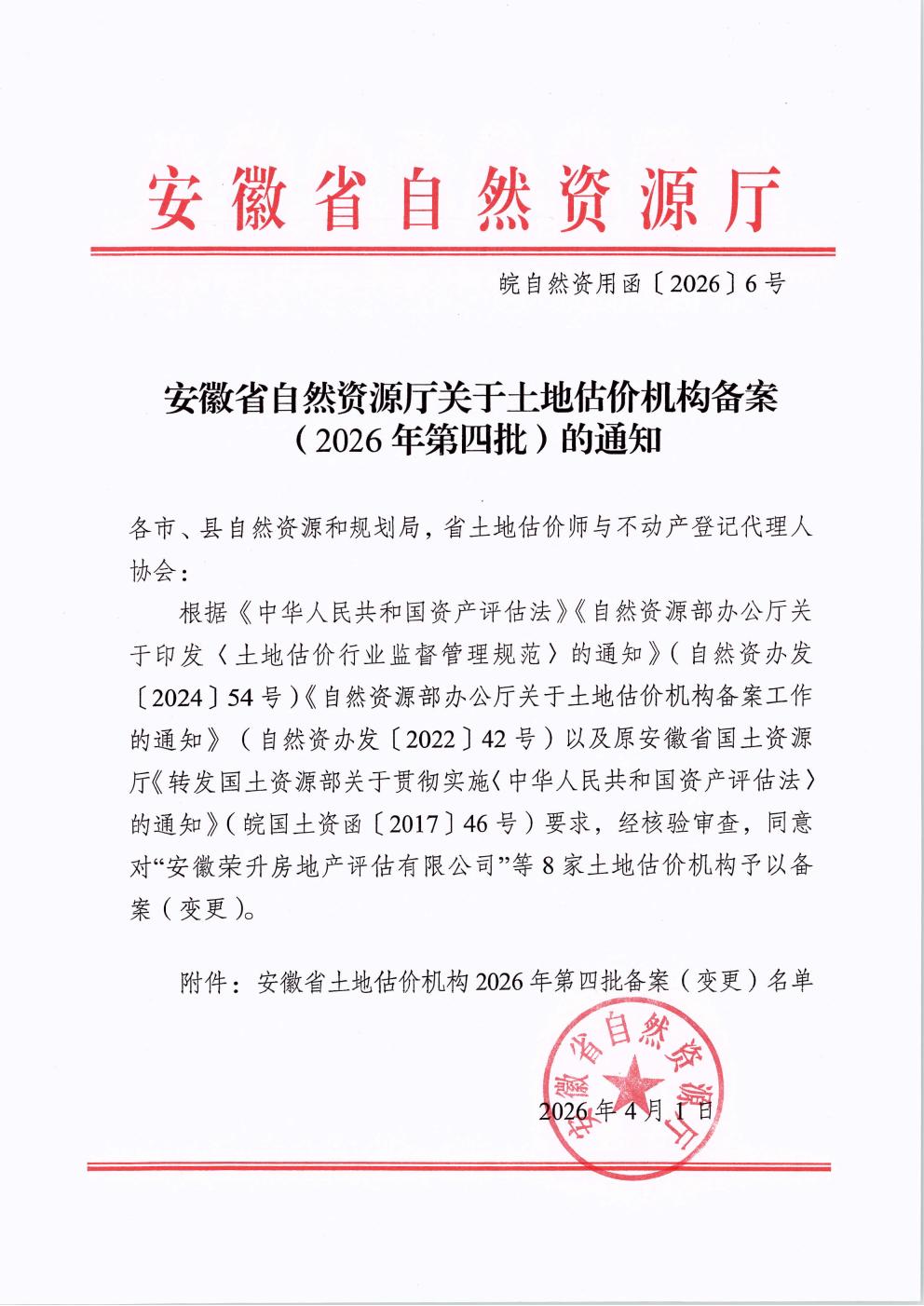 安徽省自然资源厅关于土地估价机构备案(2026年第四批)的通知
